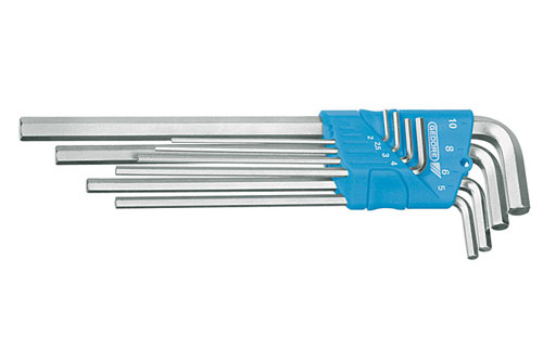 Contents: 5/64, 3/32, 1/8, 5/32, 3/16, 7/32, 1/4, 5/16".In blue plastic holder (LPDE).GEDORE vanadium steel 61CrSiV5, zinc-plated.