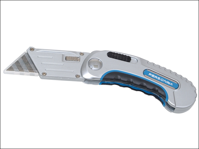Personna 630221 Pro Folding Pocket Knife that folds to a small pocket size and opens to full size with a soft comfort grip. It has a quick release button to allow fast blade changes.