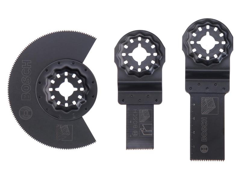 The Bosch Starlock Starter Set for general wood and metal applications. The Starlock mount provides optimum power transfer and convenient blade change within 3 seconds.