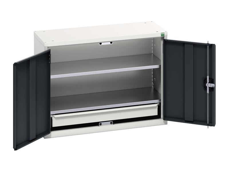 £253.81 excl. VAT £304.57 inc. VATThis Bott Verso Economy Wall Cupboard has 2 height adjustable, galvanised steel shelves (35kg U.D.L.) and 1 roller bear drawer (10kg U.D.L.)